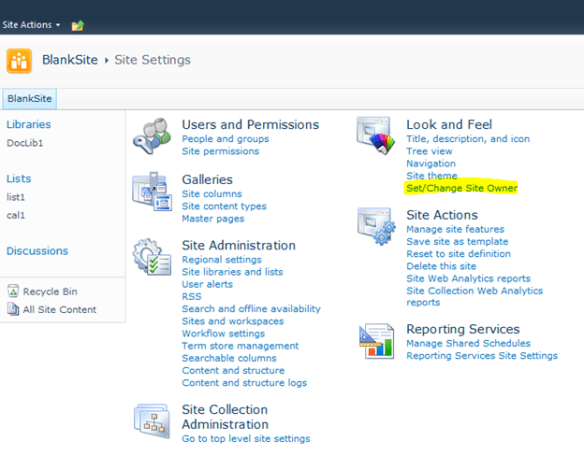 Set/Change Site Owner screen