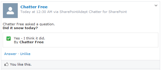 Creating a Question Feed Item is as simple as selecting the option from the Feed/Action menu and asking your question:
