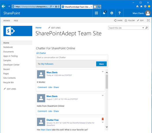 Hi Everyone! Hope you all had a very nice holiday. I am back to work with even more improvements to Chatter for SharePoint and some answers to what is in store with Salesforce Spring ’17.