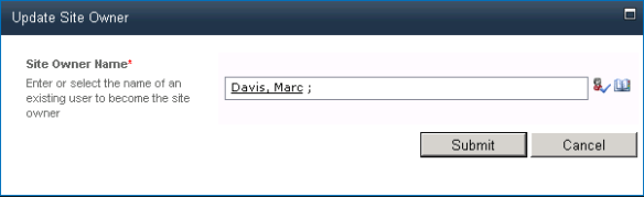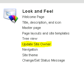 Set/Change Site Owner screen